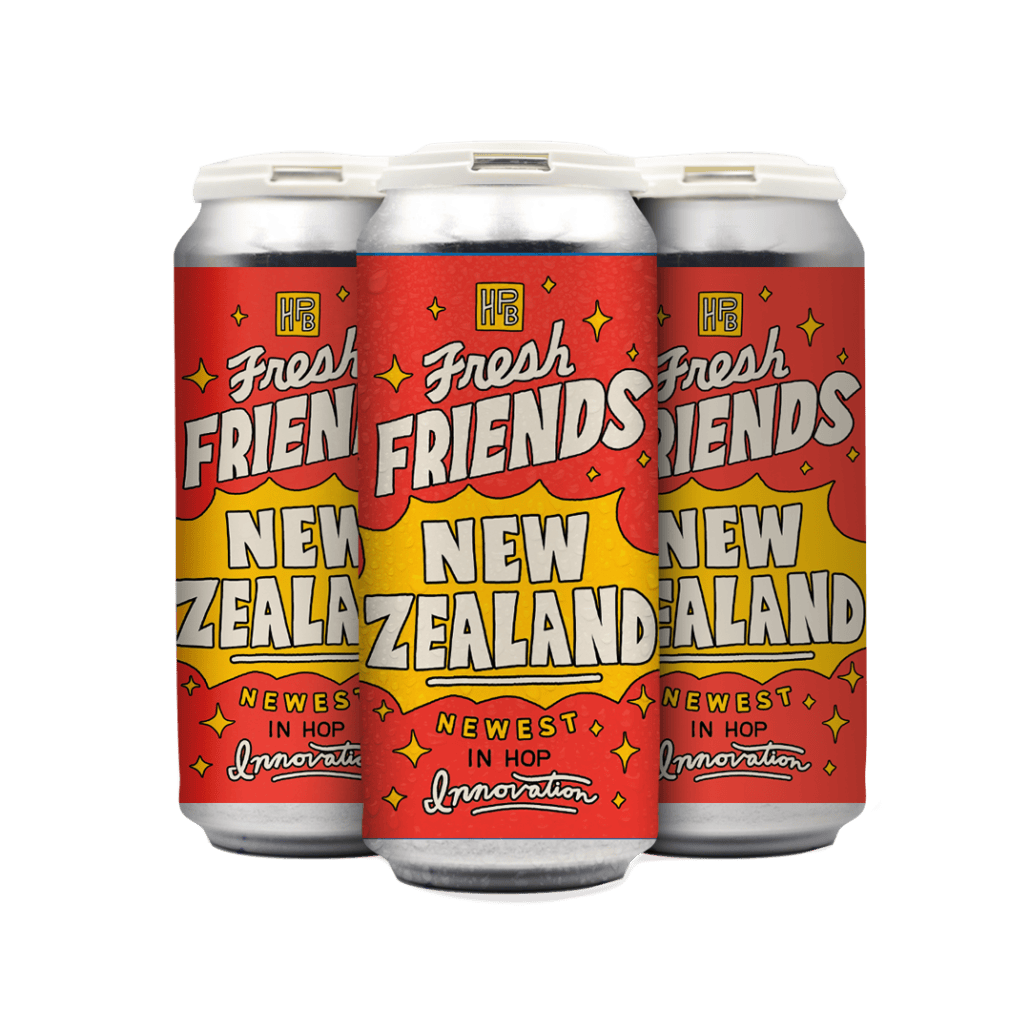 Fresh Friends: New Zealand is a 7.0% ABV the first Hazy IPA of our Fresh Friends releases. This beer is designed to spotlight a lineup of exciting New Zealand hops, with a special emphasis on NZH-109, a new experimental variety from NZ Hops. NZH-109 is loaded with expressive lime, grapefruit, pineapple, and sweet melon character. In addition to the NZH-109, this beer is layered with Nectaron hops for ripe tropical notes and Peacharine hops for bright stone fruit and soft floral accents. The result is a plush, modern hazy IPA that highlights the vibrant, evolving landscape of New Zealand hop innovation.