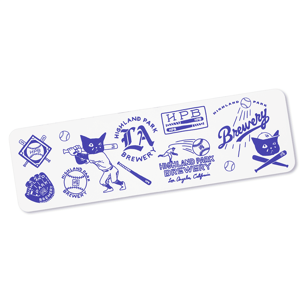 8″ x 2.4″ Matte Vinyl Sticker with all the HPB Baseball icons, including Sad Cat Slugger.