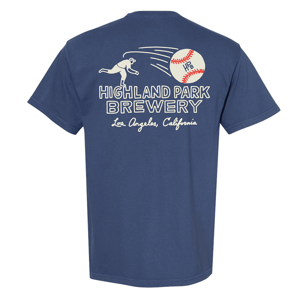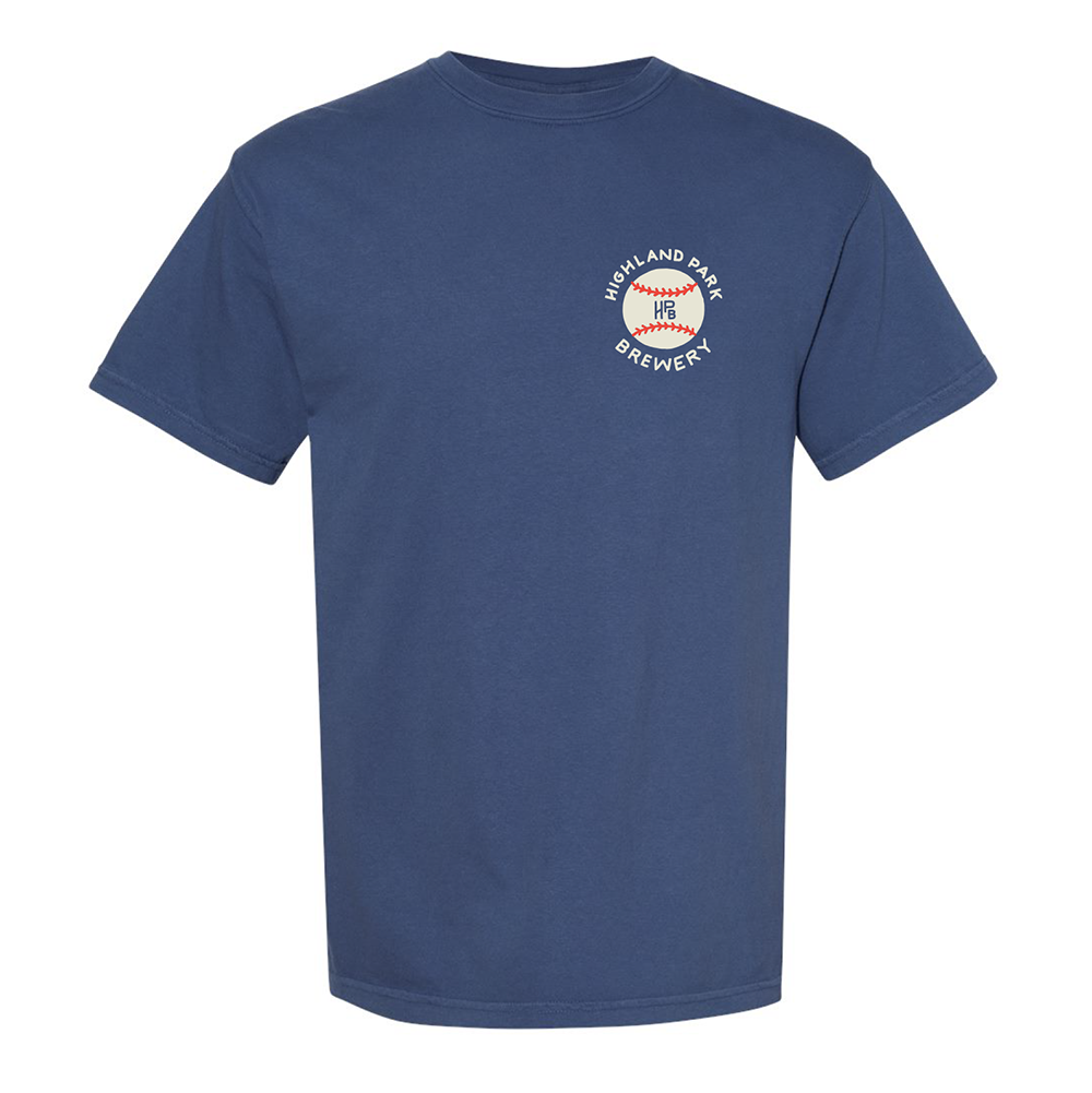 Original baseball themed art by Scraplabs printed on dark blue Comfort Colors T-Shirts.